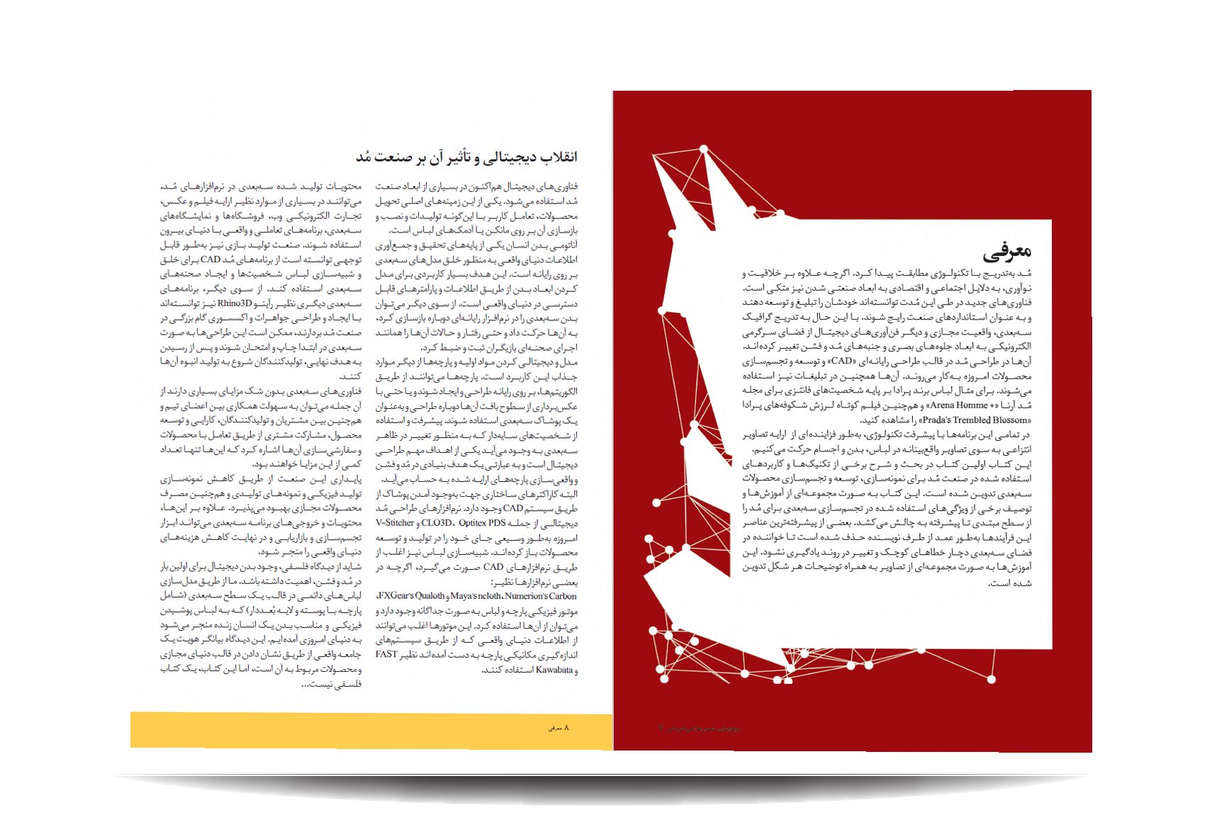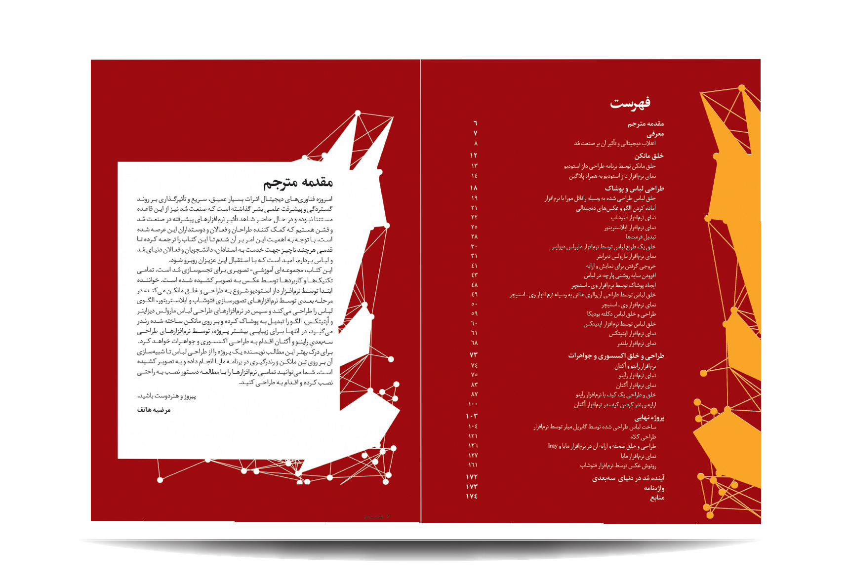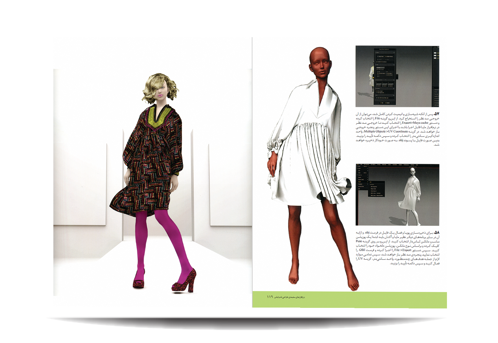 مباحث کتاب نرم افزارهای سه بعدی طراحی مد و لباس:1-خلق مانکن 2-طراحی لباس و پوشاک 3-طراحی و خلق اکسسوری و جواهرات 4-پروژه نهایی 5-آینده مد در دنیای سه بعدی
