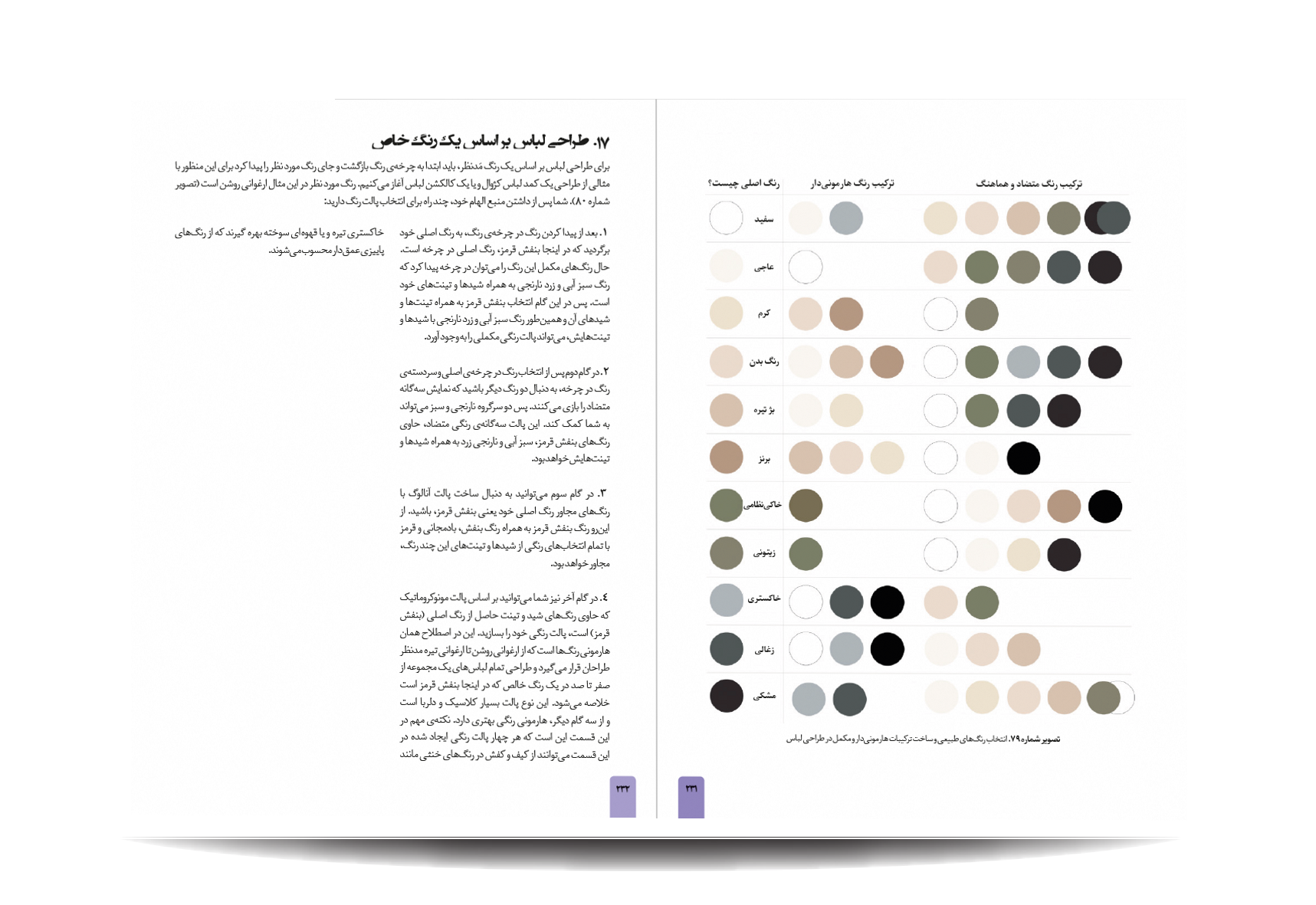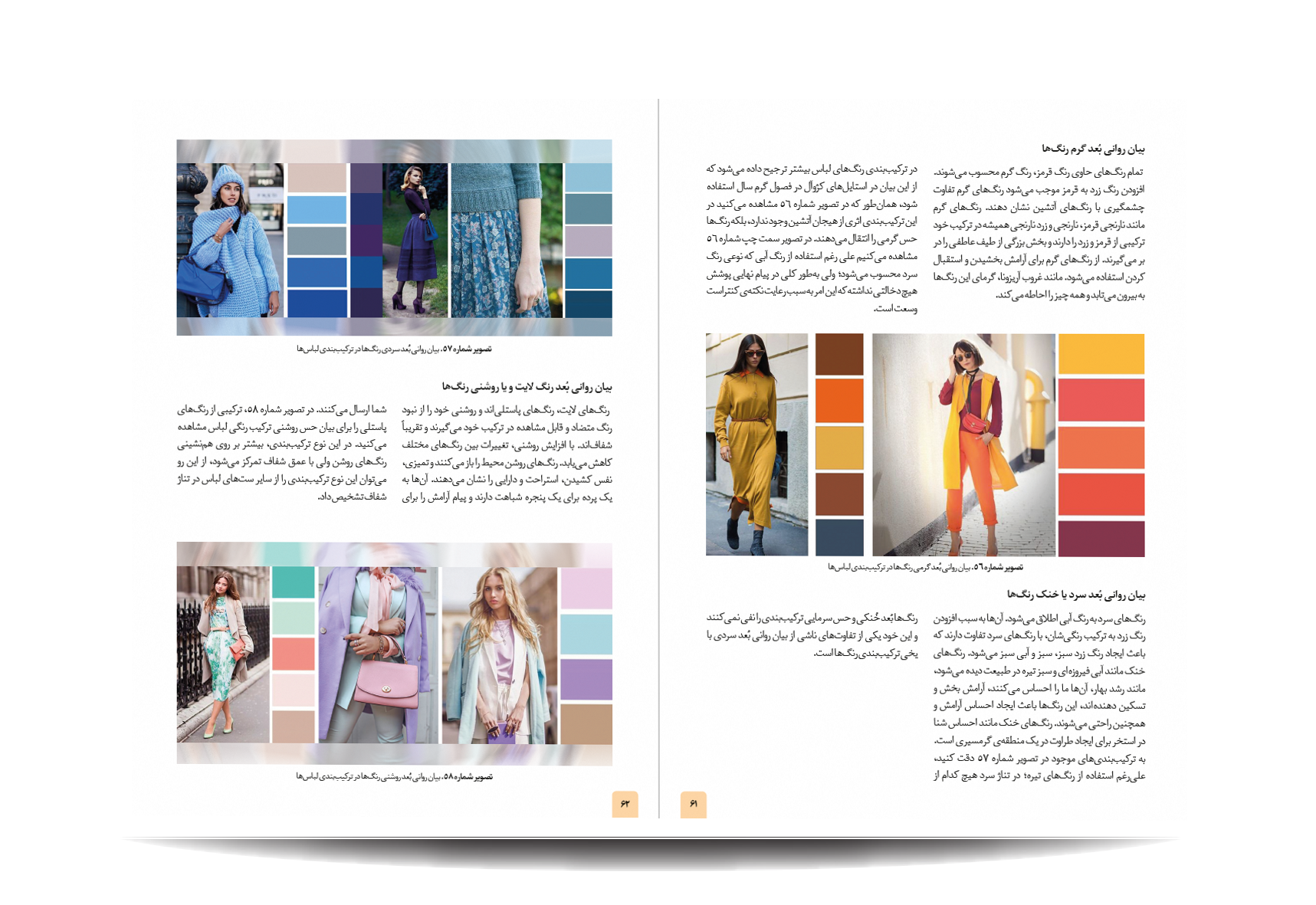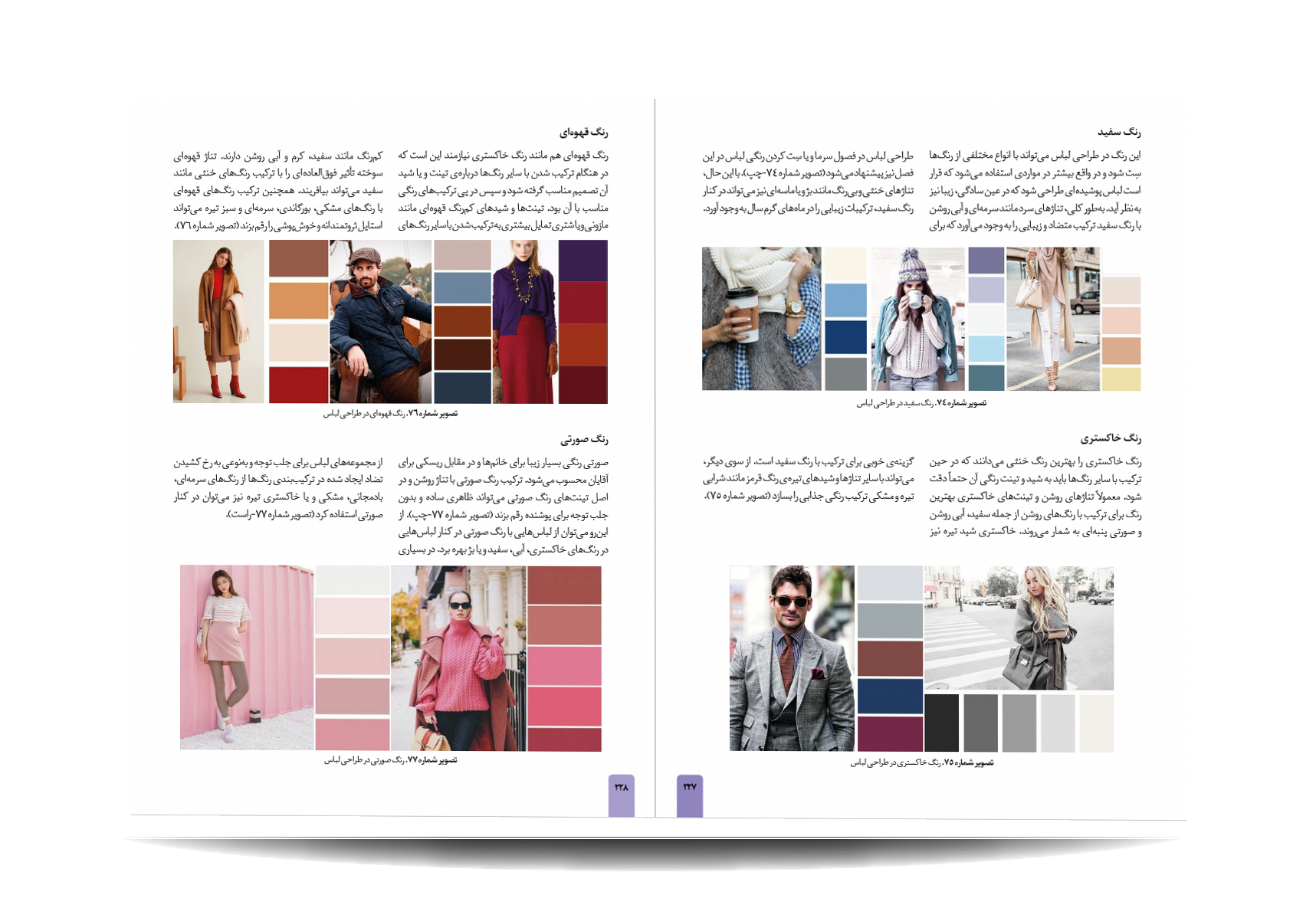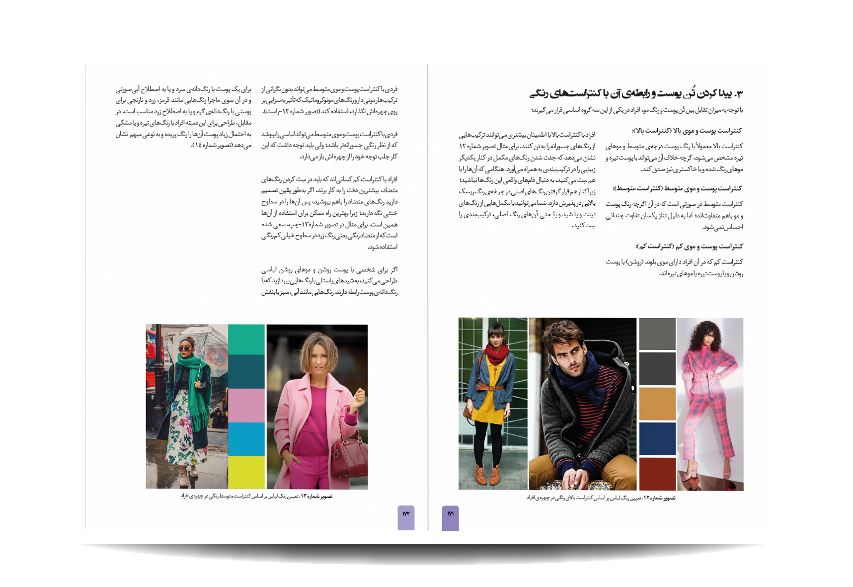 کتاب رنگشناسی تخصصی لباس توسط انتشارات جمال هنر به چاپ رسیده است. معرفی مباحث کتاب رنگ شناسی تخصصی لباس برای طراحان مد: پایه های شناخت رنگ در دنیای فشن-مفاهیم رنگی-چرخه ی رنگ-ویژگی رنگ-پالت های رنگ-ترکیب رنگ ها به منظور بیان هدف-نور رنگی-هماهنگی رنگی-کنتراست رنگی-نشانه های رنگ در تاریخ-باورهای رنگی-روانشناسی رنگ-معانی رنگ-اثر رنگی-جلوه های ویژه ی رنگ ها-حس و حالت رنگ ها-تاریخچه ی پالت ها و تم های رنگی در دنیای طراحی مد و فشن-اصول و کاربرد رنگ در دنیای فشن و کمد لباس افراد-تاریخچه پیدایش رنگ لباس متناسب با رنگ پوست افراد-رنگ ها و پوست بدن-پیدا کردن تن پوست و رابطه ی آن با کنتراست های رنگی-حس یک رنگ در دنیای مد-حس یک رنگ در لباس-معانی رنگ ها در فشن-رنگ ها در طراحی لباس-درک روابط رنگ ها برای در کنار هم قرار دادن لباس ها-نکاتی برای انتخاب درست رنگها در لباس-رنگ ها چگونه به لباس شخصیت می دهند.