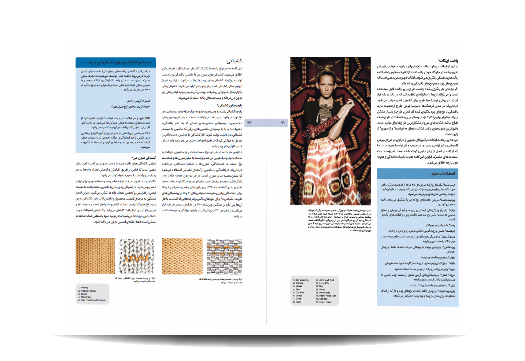 کتاب راهنمای جامع الیاف و منسوجات برای طراحان مد و لباس توسط انتشارات جمال هنر به چاپ رسیده است. این کتاب در واقع راهنمایی بصری برای شناخت الیاف و منسوجات است. طراحی مد و دانش پارچه شناسی بیشتر در قالب شاخه های جداگانه تدریس می شوند و دانش مواد اولیه و فرآیند تولید پارچه به طور معمول با دروس مد ادغام نمی شوند. داشتن درک صحیحی از پارچه ها و الیاف تشکیل دهنده ی انها در فرایند طراحی ضروری است.مباحث کتاب راهنمای جامع الیاف و منسوجات برای طراحان مد و لباس: تبدیل الیاف به پارچه-درآمدی بر رنگ-الیاف حیوانی شامل پشم،الیاف حیوانی مجلل،ابریشم- الیاف گیاهی مانند کتان،پنبه- الیاف بشرساخته مانند الیاف سینتتیک و الیاف بازیافتی