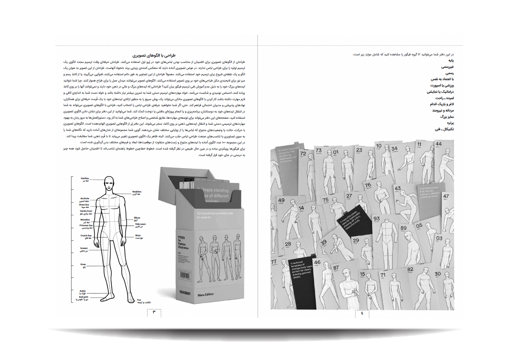 این دفتر مرجع کامل فیگور مردانه گروه فشنری که در قطع آچهارتوسط انتشارات جمال هنر به چاپ رسیده است در برگیرنده 100 عدد الگوی آماده فیگو، مناسب این حرفه است که تمام نیازهای شما برای طراحی لباس را فیگورهای متنوع برطرف می کند. در این مجموعه انواع فیگورهای زیر گنجانده شده است: پایه-غیررسمی-رسمی-بااعتماد به نفس-ورزشی-دراماتیک-لمیده-راحت-لاغر و باریک اندام مردانه-نیروند-سایزبزرگ- پرتره و تکنیکال