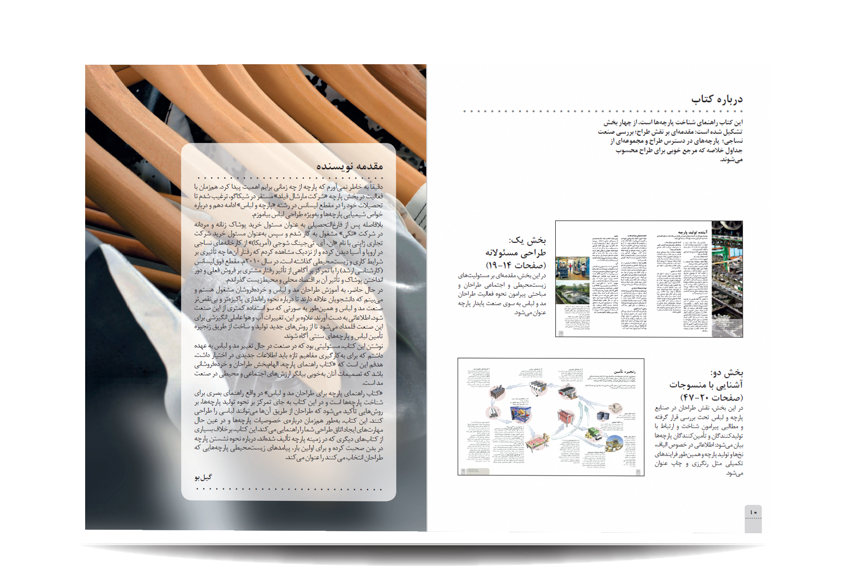 کتاب راهنمای جامع پارچه برای طراحان مد و لباس نوشته گیل بو ترجمه ملیحه ملائی توسط انتشارات جمال هنر به چاپ رسیده است.کتاب راهنمای جامع پارچه در واقع راهنمای بصری برای شناخت پارچههاست و در این کتاب به جای تمرکز بر نحوه تولید پارچهها، بر روشهایی تاکید میشود که طراحان از طریق آنها میتوانند لباس را طراحی کنند. این کتاب، به طور همزمان درباره خصوصیات پارچهها و در عین حال مهارتهای ایجاد اتاق طراحی شما را راهنمایی میکنند. در این کتاب، بر خلاف بسیاری از کتابهای دیگری که در زمینه پارچه تالیف و ترجمه شدهاند، دربارهی نحوه نشست پارچه در بدن صحبت میکند و برای اولین بار، پیامدهای زیست محیطی پارچههایی که طراحان انتخاب میکنند را عنوان میکند.مباحث کتاب راهنمای جامع پارچه برای طراحان مد و لباس: طراحی مسئولانه-آشنایی با منسوجات-راهنمای پارچهها-ایجاد اشکال با تضاد پارچهها-ایجاد تراکم با پارچهها