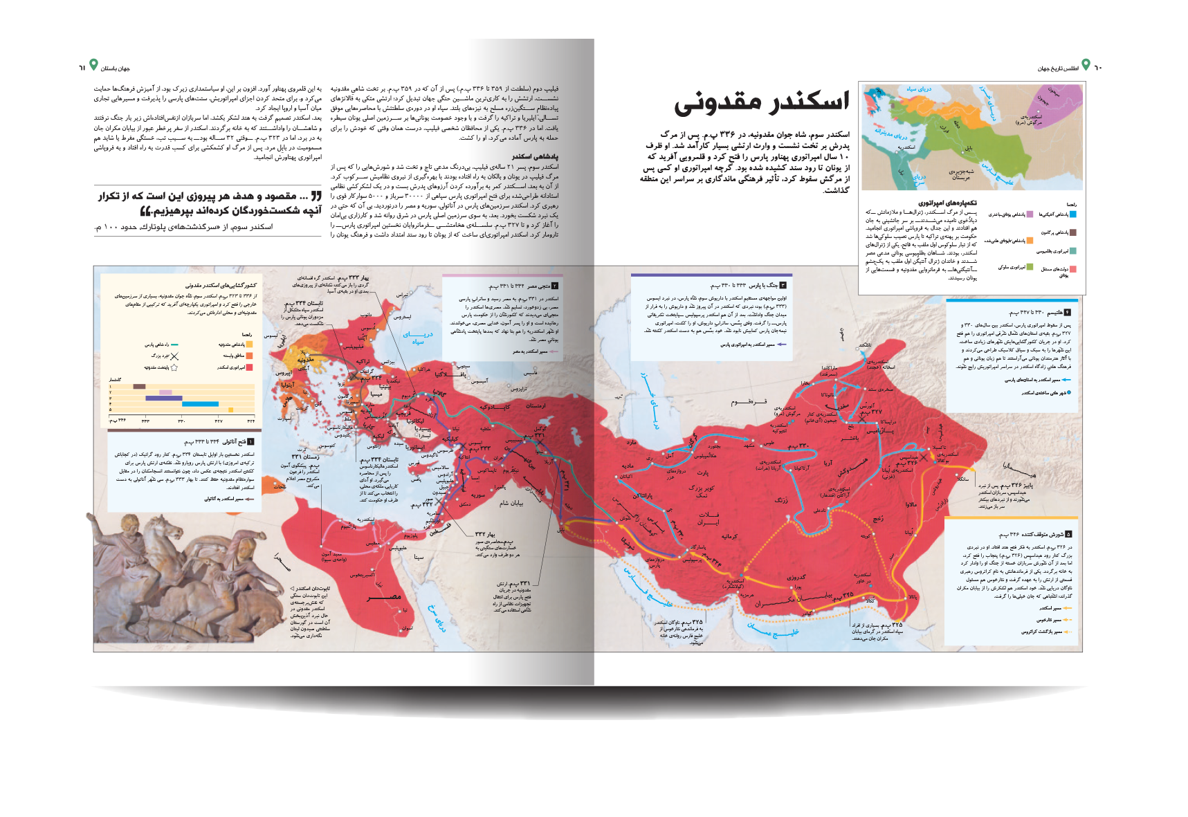 نقشه ها فقط به ما نشان نمی دهند که کجا برویم ، بلکه به ما نشان می دهند که کجا بوده ایم. مروری خیره کننده بر تمام تاریخ بشر ، در کنار هم با 140 نقشه ی فوق العاده.در کتاب اطلس تاریخ جهان بیاموزید که چگونه چیزی مانند ماشین چاپ می تواند زمانی را تعریف کند ، یا چگونه متفقین در اروپا می توانند نازی ها را شکست دهند. در این کتاب تاریخی قابل توجه چیزهای زیادی برای خواندن وجود دارد ، و دقیقا به همان اندازه که نیاز است تا بررسی شود.نقشه ها چیزی بیشتر از توپوگرافی زمین یا مرزهای کشورها هستند. نقشه ها می توانند نشان دهنده حرکت افراد و ایده ها باشند و راهی منحصر به فرد برای توضیح مضامین تاریخی و کاوش در دوره های گسترده زمانی را ارائه می دهند.
