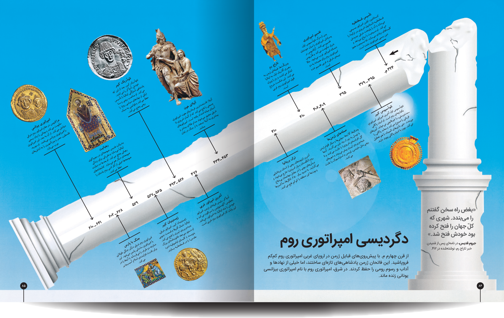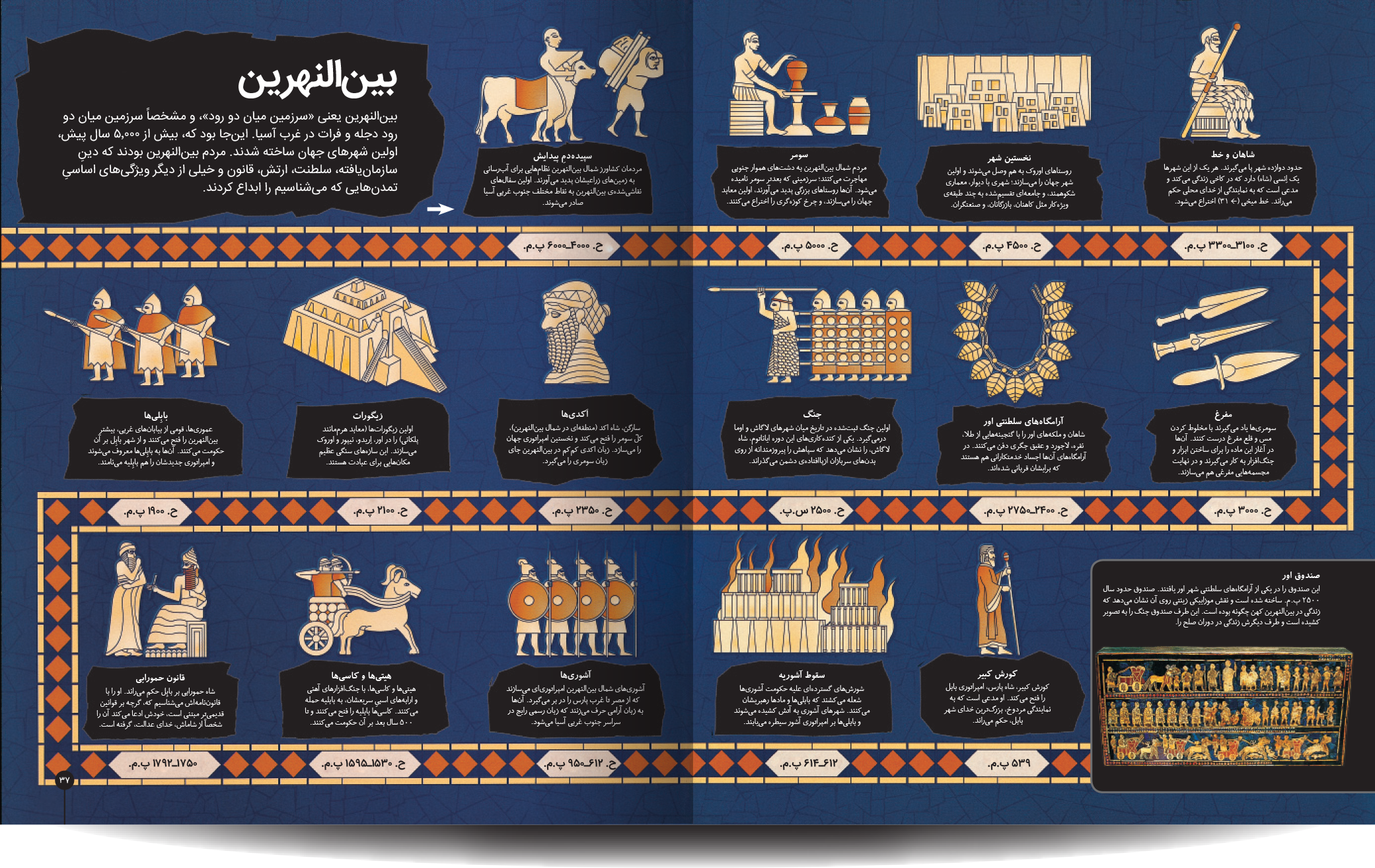 13 میلیارد سال تاریخ را با نشستن در خانه ی خود کاوش کنید! در زمان سفر کنید و کشف کنید که چگونه برخی از بزرگترین رویدادهای جهان رخ داده است.از بیگ بنگ تا عصر دیجیتال، این دایره المعارف بصری باورنکردنی برای کودکان تقریبا همه چیزهایی را که تا به حال در تاریخ اتفاق افتاده است به شما نشان می دهد.با سفر در بیش از 130 جدول زمانی خیره کننده، تاریخچه ی جهان زنده می شود. مملو از عکس ها و تصاویر فوق العاده، همراه با متن آموزنده و حقایق سرگرم کننده. این کتاب از تاریخ ظهور و سقوط امپراتوری ها را پوشش می دهد تا پیشرفت های علمی و اختراعات پیشگامانه ای که زندگی ما را تغییر داد.این کتاب آموزشی روشی تخیلی برای به تصویر کشیدن تاریخ جهان برای کودکان 8 سال و بالاتر است. در طول صفحات، فرزند شما با خونخوارترین دزدان دریایی تمام دوران ملاقات می کند و آنچه را که در طوفان باستیل اتفاق افتاده است، کشف می کند.