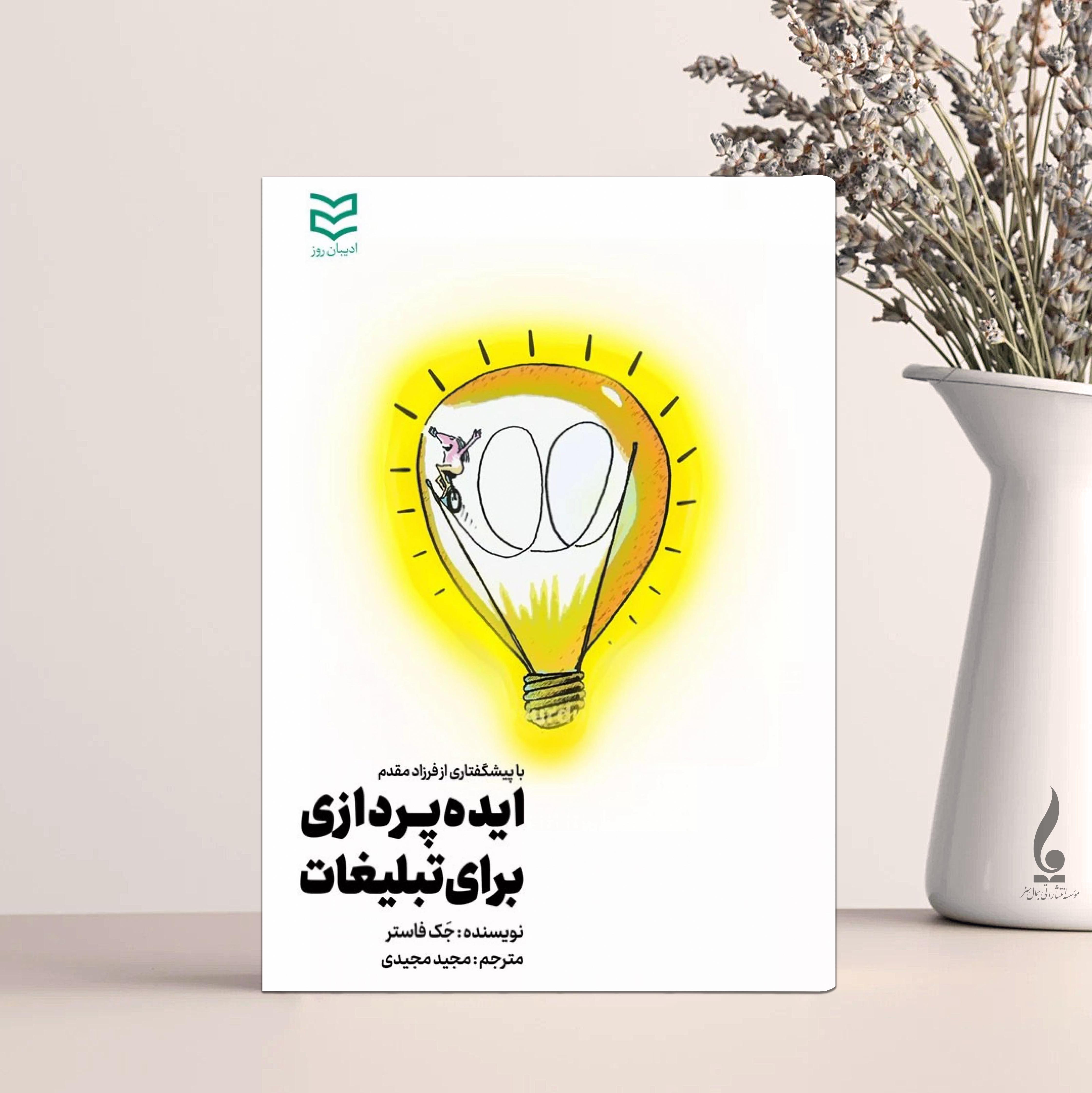 کتاب ایده پردازی برای تبلیغات نوشته جک فاستر با ترجمه مجید مجیدی توسط انتشارات ادیبان روز به چاپ رسیده است. کتاب ایده پردازی برای تبلیغات نویسنده با بیان روان و توأم با طنز در دو بخش اصلی شما را با مفهوم ایده پردازی در تبلیغات آشنا می کند:در بخش اول با عنوان ده روش ایجاد شرایط مناسب ایده پردازی در ذهن شما، زیرساخت های ایده پردازی را آماده می کند.در بخش دوم تحت عنوان یک روش پنج مرحله ای برای تولید ایده، در یک مدل پنج مرحله ای شما را وارد دنیای ایده پردازی می کند. مباحث کتاب ایده پردازی برای تبلیغات: ده روش ایجاد شرایط مناسب ایده پردازی در ذهن شما-تفریح کنید-مثل یک کودک باشید-مستعد جذب ایده ها باشید-موفقیت را تصویرسازی کنید-از شکست خوشحال شوید-ورودی های بیشتری ایجاد کنید-و...یک روش پنج مرحله ای، برای تولید ایده-مسئله را تعریف کنید-اطلاعات لازم را جمع آوری کنید-برای یافتن ایده جستجو کنید-همه چیز را فراموش کنید- ایده را اجرایی کنید