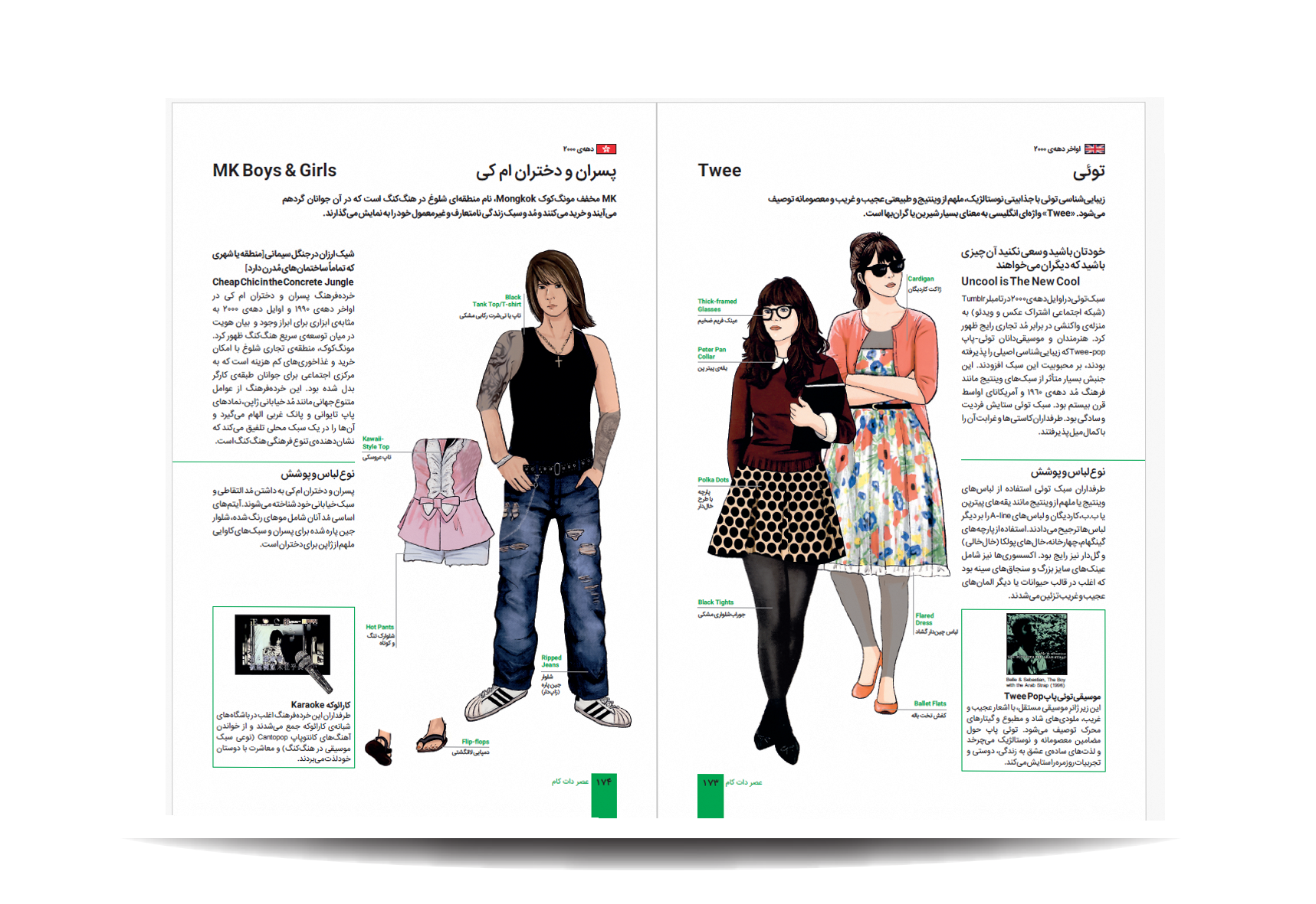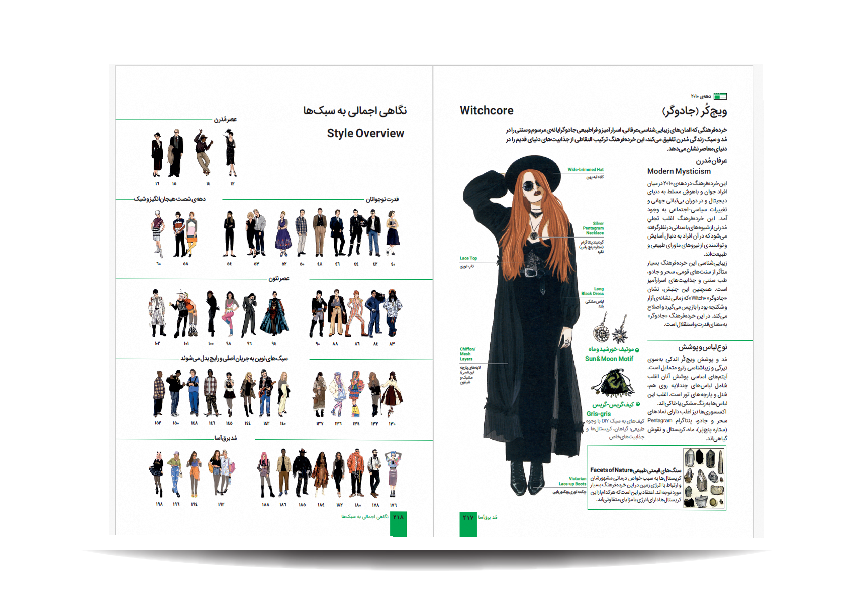 کتاب «استایل پدیا» مرجع تصویری و توصیفی سبکها و استایلهای فشن در جهان است. با صدها تصویر رنگی و توضیحات فنی، این اثر مخاطب را با ویژگیهای هر سبک از فلاپرها، لیندی هاپرها تا کلمبیانوها و آنجل کر آشنا میکند.