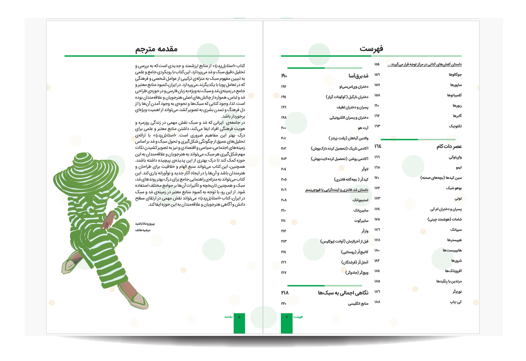 کتاب استایل پدیا از گروه فشنری توسط انتشارات جمال هنر به چاپ رسیده است. کتاب «استایل پدیا» یک مرجع تصویری و کاربردی برای شناخت سبکها و استایلهای مهم دنیای فشن است. این فرهنگ مصور با زبانی روشن و صدها تصویر رنگی، ویژگیهای هر سبک، عناصر کلیدی، تاریخچه کوتاه و تمایزهای بصری را معرفی میکند تا دانشجویان طراحی لباس، استایلیستها و پژوهشگران مد بتوانند سریعتر سبکشناسی کنند و زبان مشترک حرفهای بیابند. مخاطب با مرور ساختار یافته سبکها، از مینیمال و کلاسیک تا ماکسیمال، گرنج، بوهمیان، آوانگارد و استریتور، با پارچههای شاخص، فرم سیلوئت، پالتهای رنگی و جزئیات تکمیلی هر رویکرد آشنا میشود. استایل پدیا علاوه بر افزایش سواد بصری، به فرآیند ایدهپردازی، moodboard سازی و ارائه حرفهای کمک میکند و برای دروس دانشگاهی «سبکشناسی پوشاک» و پروژههای عملی بسیار مفید است. این کتاب با چاپ رنگی باکیفیت و جلد سخت، به عنوان یک مرجع کنارمیزی، راهنمای سریع انتخاب استایل، الهام برای طراحی کالکشن و مرجعی برای ایجاد زبان مشترک میان طراح، کارفرما و تیمهای تولید به شمار میآید.