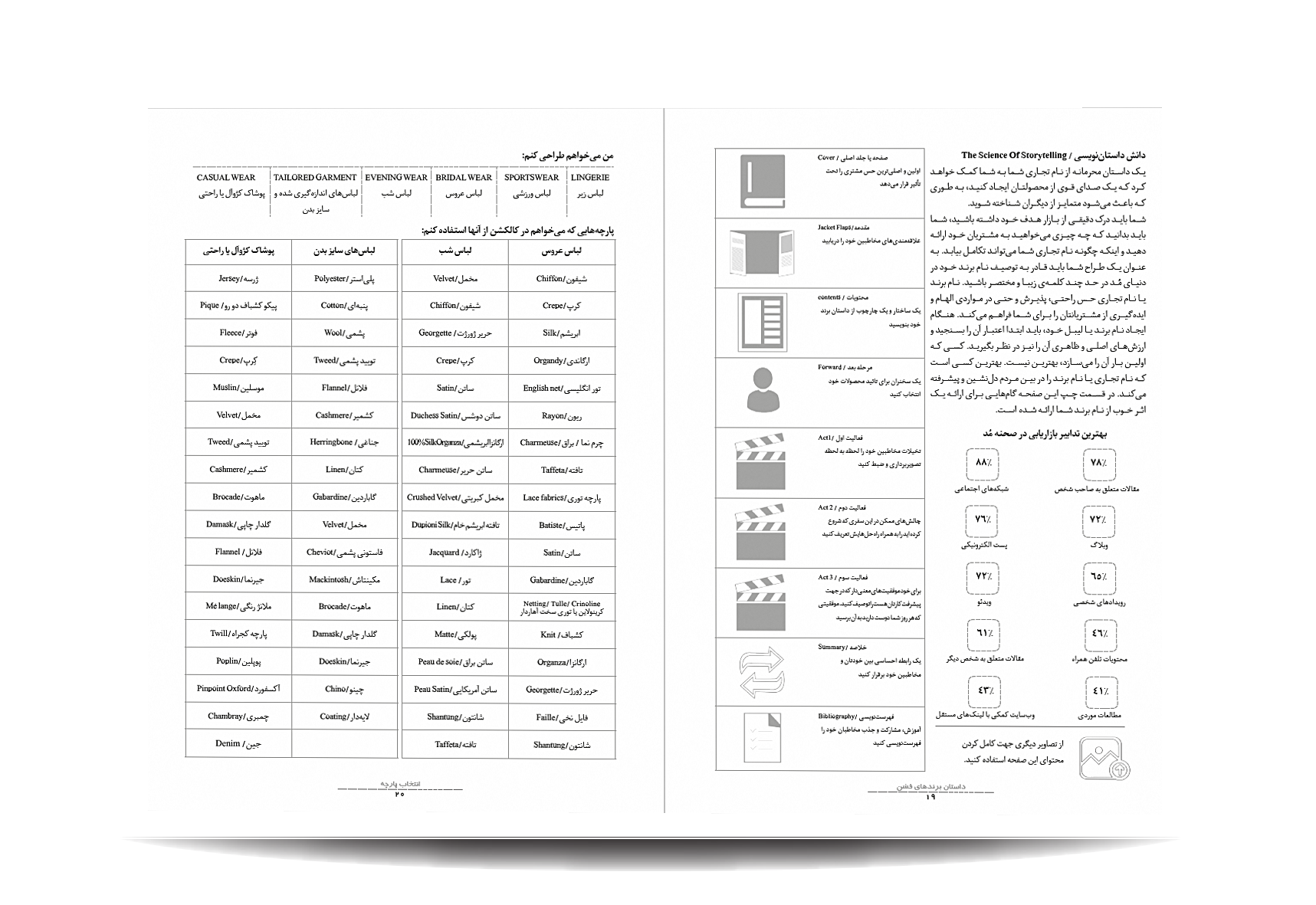 کتاب پروفشن اسکچپد توسط انتشارات جمال هنر به چاپ رسیده است. معرفی مباحث کتاب پرو فشن اسکچ پد:دیکشنری مد و فشن-پوزیشن های خطی فیگور زنانه-پوزیشن های جلو، پشت و نیم رخ خطی فیگور زنانه-پوزیشن های فلت و تخت فیگور زنانه-پوزیشن های لباس زیر زنانه-پوزیشن های سر و گردن برای طراحی اکسسوری-پوزیشن های سر و گردن برای طراحی جواهرات-پوزیشن های دست برای طراحی جواهرات-طراحی کفش و صندل-فیگورهای فشن زنانه-فیگورهای طرح کلی-اندازه گیری-لیست برندهای مشهور